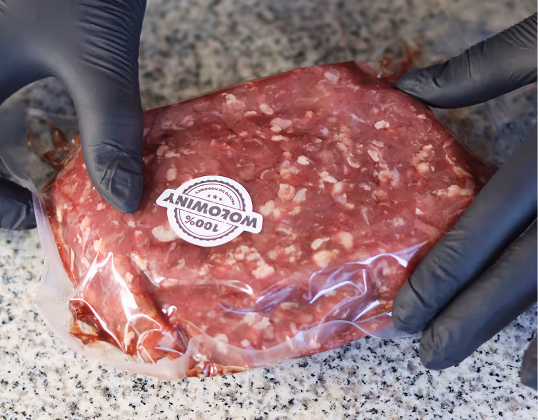 Wszystkie kawałki pakujemy próżniowo. Dzięki temu mięso zachowuje świeżość i można je bezpiecznie przechowywać w lodówce lub zamrozić na dłużej.